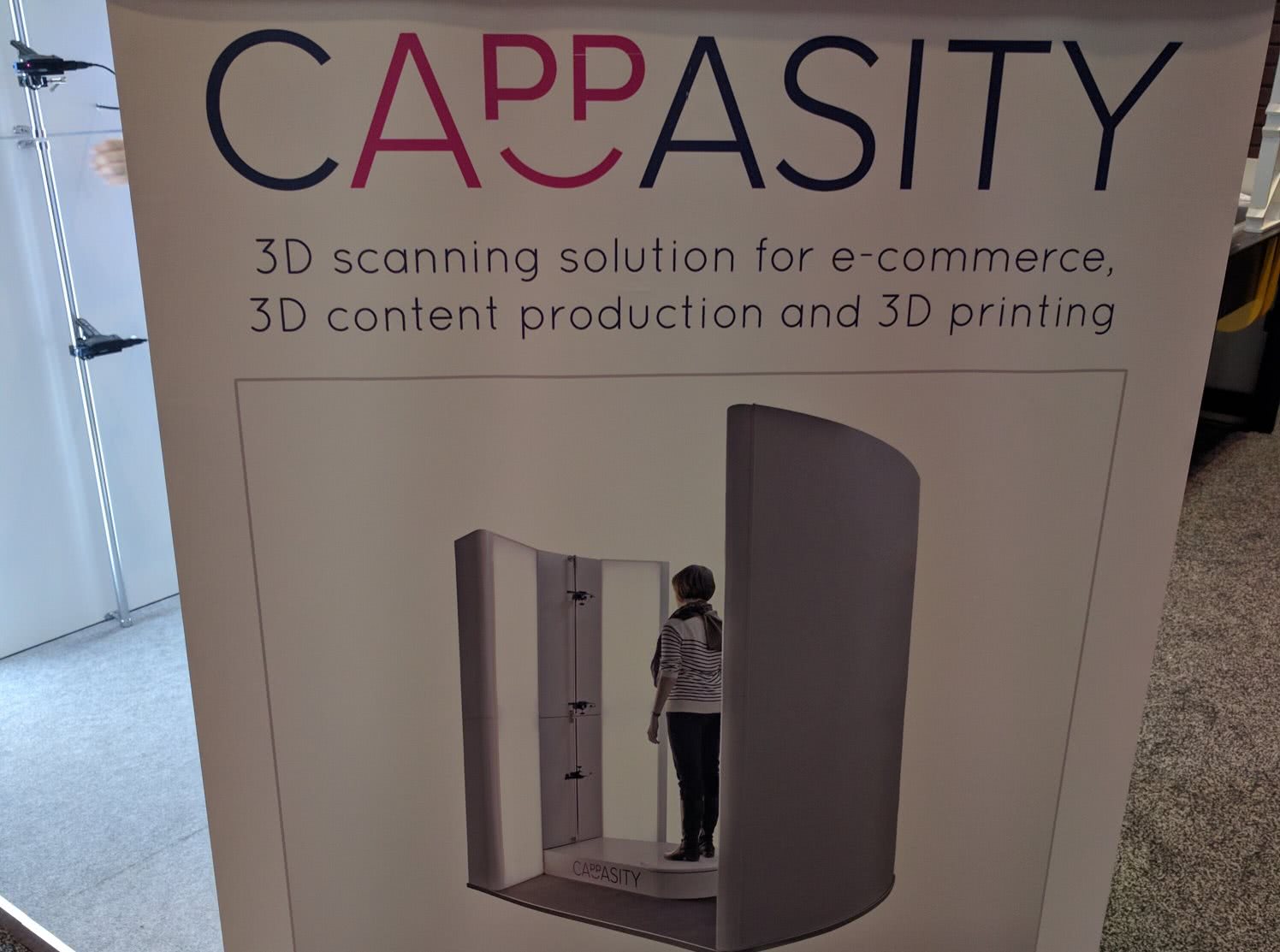 同样采用Intel的RealSense技术,Cappasity带来了3D扫描解决方案。除了鞋盒大小的旋转扫描仪,它还有下面这种全身扫描的设备器: