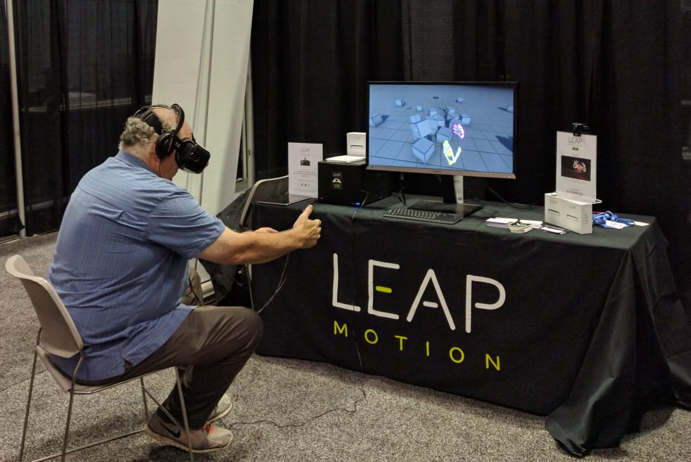 这次展会上Leap Motion带来了VR手势追踪的展示,效果相当不错,可以非常迅速的捕捉两手手指的精准动作。其实就是在Oculus头显外绑住了一个Leap Motion传感器。感觉自从几年前惊艳登场后,Leap Motion这几年一直没有找到发展方向,无论是针对桌面电脑还是笔记本的手势追踪都表现差强人意,没有找到真正的痛点。直到现在终于找到手势追踪在VR领域的应用。
